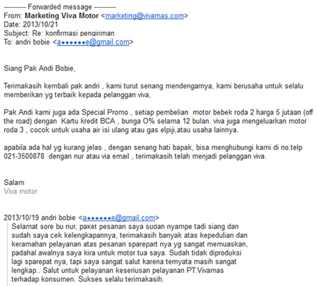 Terima kasih kepada Bapak Andri, atas kepercayaan pada pelayanan kami dan dengan setia telah menggunakan produk-produk viva motor.